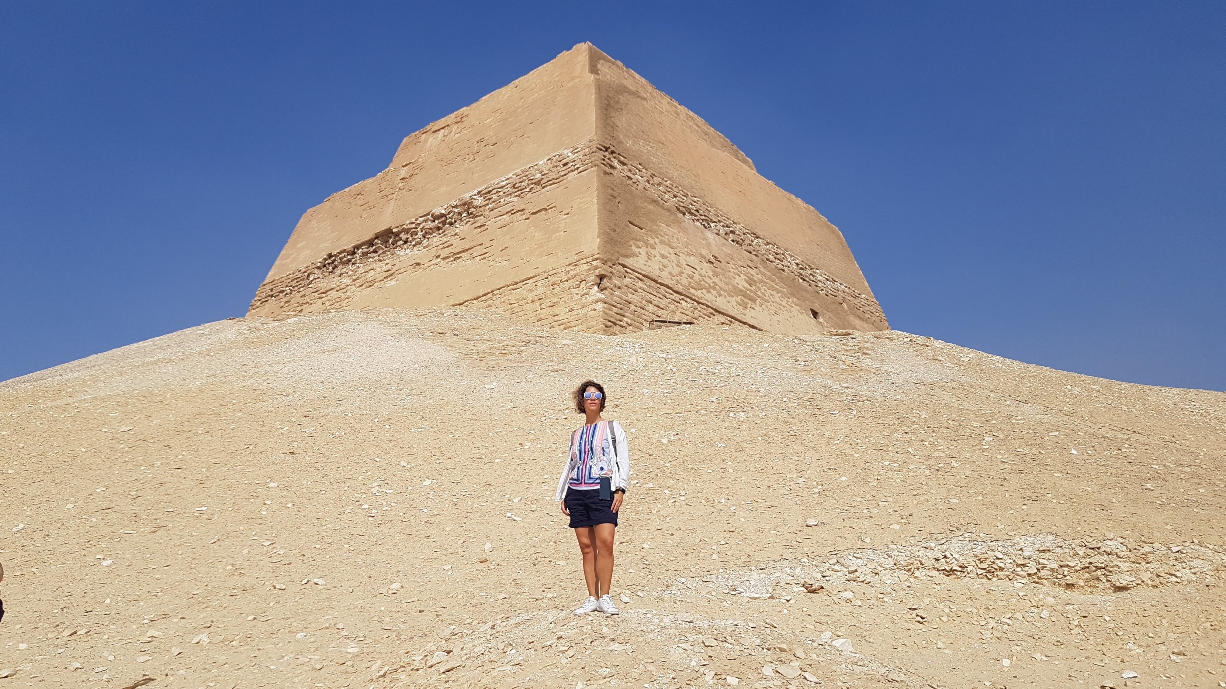 Si la primera se estima que se trata del primer intento de construir una pirámide de paredes rectas y que un error de cálculo llevó a variar su geometría para que no se desmoronase, la Pirámide Roja es la primera construcción de ese tipo de caras lisas de la historia. Miden 105 y 104m respectivamente y si bien puede que no sean tan impresionantes como las de Giza, emociona verlas y pensar que estamos delante de las primeras pirámides construidas en la historia.