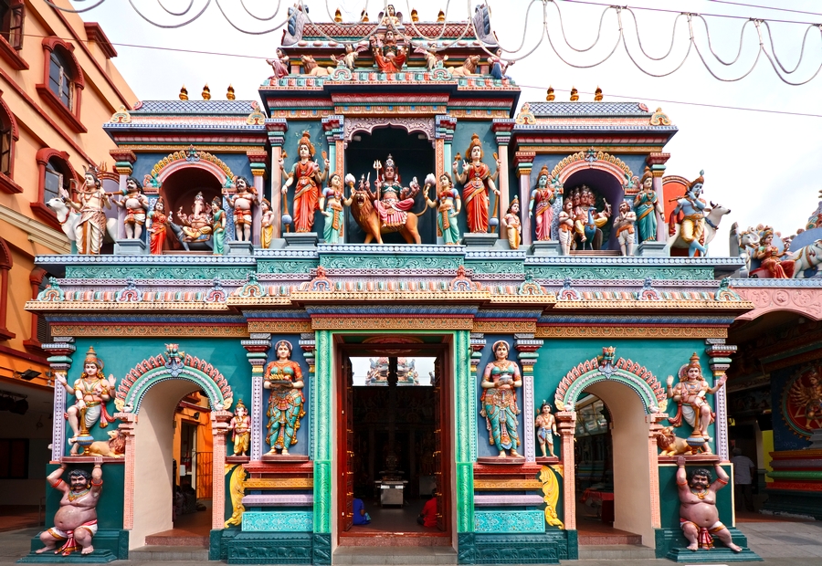 Los templos hindús se suceden en la acera norte de la calle. Sri Veeramakaliamman temple el primero que encontramos, es un pequeño templo construido al estilo tamil en el año 1855 por trabajadores bengalíes y cabe destacar varias imágenes de la diosa Kali, una de ellas bastante curiosa ya que luce un collar de calaveras y aparece descuartizando a sus víctimas. El siguiente con el que nos topamos es con el de Sri Srinivasa Perumal Temple, dedicado a Krishna, una de las encarnaciones de Vishnu. También construido en el S XIX aunque su ornamentada torre principal se añadió en 1966 Por último, cerca ya del final de la calle, encontramos el Sri Vadapathira Kaliamman temple cuya fachada principal parece un decorado fallero con decenas figuras multicolores. Es el más antiguo del barrio pero también el que tiene las remodelaciones más modernas (finalizado oficialmente en 1984)