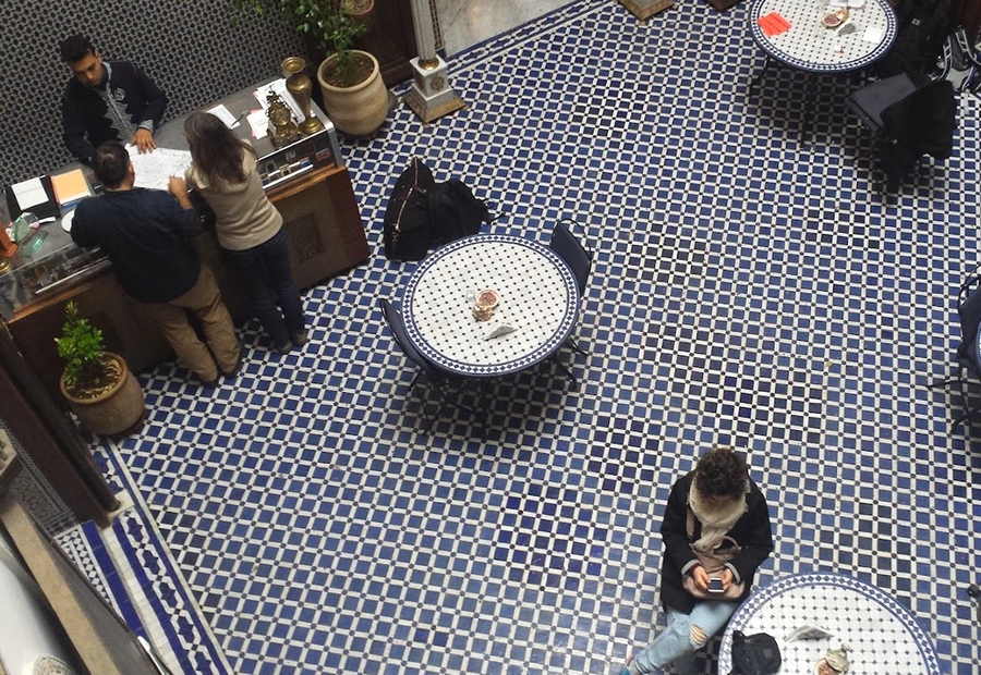 En Marruecos existen unas edificaciones llamadas Riads (o ryads) que en los últimos años se están restaurando y reformando para convertirlos en hoteles. Los hay más o menos lujosos pero son alojamientos más asequibles que los grandes hoteles y, por supuesto, con mucho más encanto. La estructura es siempre la misma: dos o tres plantas construidas entorno a uno o dos patios que cuentan a menudo con fuentes y vegetación. Se trataba de casas nobles y señoriales, con fachadas muy austeras y sin prácticamente ventanas (por lo de la privacidad en los usos islámicos) pero con interiores profusamente decorados con azulejos, molduras, arcos y columnas.