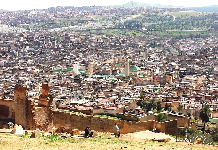 Al norte de las murallas que encierran la Medina se levanta una colina coronada por el castillo de Borj Nord. Construido en el siglo XVI, alberga el Museo de las Armas de Fez. La visita de este recinto no es nada del otro mundo, pero sí que lo son las ruinas de las tumbas de la época del sultanato de los Marínides (un imperio bereber cuyo auge se sitúa entre los siglos XIII y XV y bajo el cual Fez tuvo su época de mayor esplendor), situadas unos cientos de metros colina arriba y que ofrecen las vistas más espectaculares de la Medina en su totalidad. Desde ahí podemos contemplar al abigarrado trazado urbano de esta inmensa área peatonal y, si lo hacéis coincidir con alguna de las llamadas a la oración, experimentar la curiosa cacofonía de los cantos de los muecines que llega desde los distintos minaretes de la ciudad. Por la noche, la figura iluminada de las ruinas que se recorta en la colina se puede ver desde todos los puntos de la ciudad.