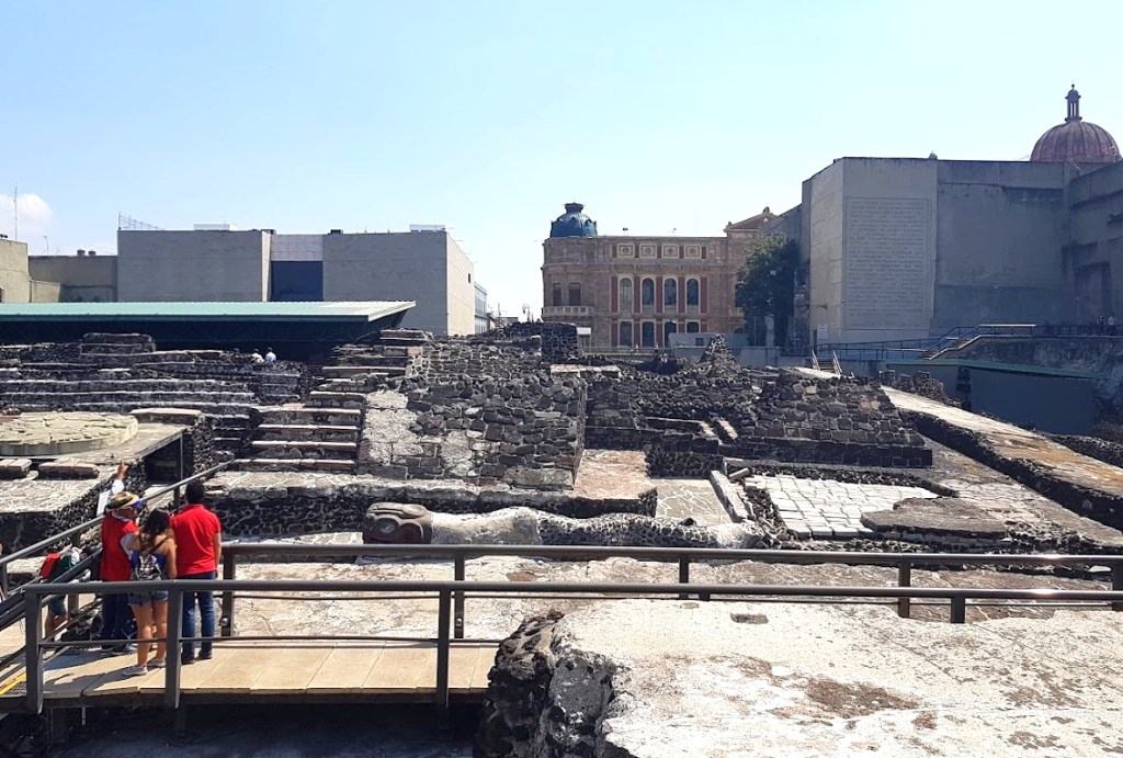 En la esquina entre la Catedral y el Palacio se halla el recinto arqueológico del Templo Mayor. En este cuadrado de 500m de lado se hallaban los edificios principales de la ciudad de Tenochtitlán, capital del imperio azteca arrasada por Hernán Cortés en 1521. Hoy en día se pueden ver las ruinas del templo al nivel de la calle y visitar el museo que hay en el subsuelo y que alberga importantes restos arqueológicos.