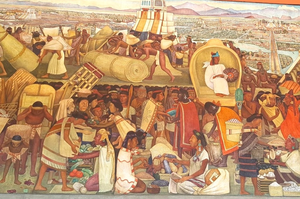 Al este se encuentra el Palacio Nacional, que albergaba el Parlamento. Sus jardines son un remanso de calma y tranquilidad en el bullicio del centro de la ciudad. Pero lo más interesante está en el primer piso del patio de armas: los impresionantes murales que Diego de Ribera dedicó a las civilizaciones precolombinas que se sucedieron hasta la Conquista española. Se trata de uno de los ejemplos más importantes en la cultura muralista mexicana y nos ilustra a la perfección sobre la riqueza y la importancia de las culturas nativas previas a la llegada de los españoles, a menudo poco conocidas en Europa.
