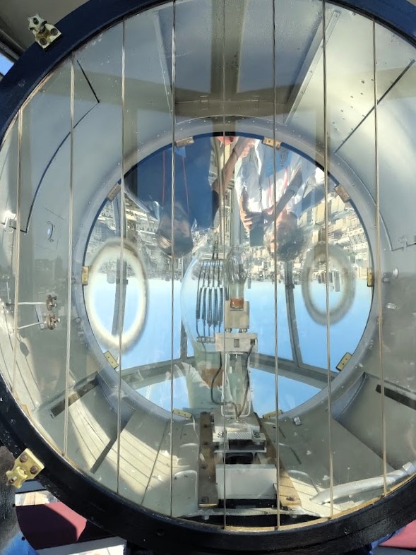 Tiene un par de espectaculares terrazas panorámicas donde tomar una cerveza mientras contemplas el atardecer y la joya del edificio: el espectacular faro de la punta superior, que encendieron para nosotros y que se construyó a modo de portal de bienvenida a los visitantes. La intención era trazar un puente de luz con su gemelo en Montevideo, el Palacio Salvo. Problema inesperado: la curvatura de la Tierra impide, obviamente, que se lleguen a tocar los haces de luz. Pero qué más da, la intención es lo que cuenta.