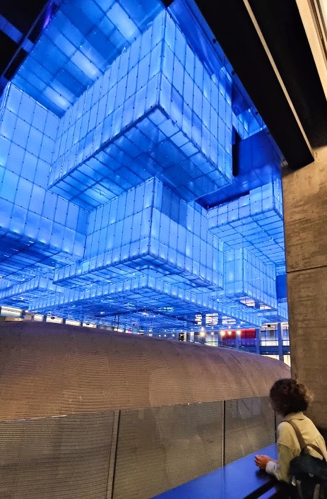 Entre el Puerto y la Casa Rosada se levanta un lugar ciertamente peculiar. Se trata del CCK o Centro Cultural Kirchner (le cambiará el nombre el guasón de Milei, como ya ha pasado con el Salón de los pueblos originarios de la Casa Rosada? ¿Lo cerrará?) Aprovechando el decimonónico edificio del Palacio de correos, en 2015 se amplió para albergar un espectacular foro multicultural que, aparte de sus exposiciones temporales, cuenta con un espectacular auditorio central rebautizado popularmente como La Ballena. Vale la pena visitarlo al atardecer para contemplar los inverosímiles juegos de luces de su parte moderna y subir a la terraza (sólo con reserva, sed previsores no como nosotros.