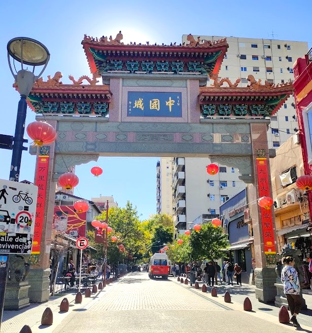 Necesitábamos esparcimiento después de la apabullante visita a la ESMA, que nos dejó tocados, así que montamos en el Colectivo núm. 15 y unas cuadras más al sur por Av. Libertadores, y en pleno barrio de Belgrano, nos sumergimos en la bulliciosa Chinatown. En realidad, no es más que una calle y sus perpendiculares que están llenas de restaurantes orientales, bazares de mil y un productos, tiendas de artículos frikis y de coleccionables, y supermercados de alimentos asiáticos. Leímos que la zona se empezó a conformar a raíz de la inmigración taiwanesa a fines del S XX y nos hicimos las correspondientes fotos debajo del Arco de bienvenida, que fue traído