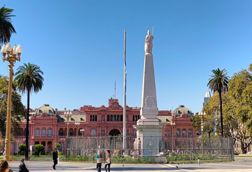 La plaza de Mayo es uno de esos sitios en los que sientes el peso de la historia. Sí, es cierto, es una afirmación un poco cursi pero es que es así. Ha sido, a lo largo de los años, escenario de batallas, pronunciamientos, fiestas, protestas (las imágenes de las Madres de Mayo dando vueltas a la estatua para evitar ser detenidas por manifestarse, son ya historia), y de alguna manera todo eso se nota cuando te sientas en uno de sus bancos y contemplas este magnífico escenario.