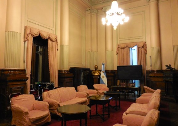Pudimos ver el Salón Azul, con su araña colgante de bronce de 2054 Kg (no pasamos por debajo por si las moscas). La cámara de los senadores, el salón de los Pasos Perdidos, antesala de la Cámara de Diputados y la propia Cámara de los diputados. Con sus 257 bancas dispuestas en forma de hemiciclo y sus balcones para invitados y para el pueblo. Nos resultó curioso ver que los asientos todavía conservan el cenicero.