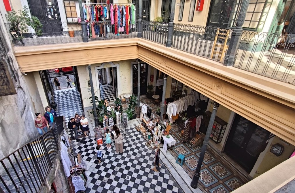 La pintoresca Calle Defensa, que vertebra el barrio y que fue antaño su vía principal, nos llevó a la acogedora Plaza Dorrego, que alberga uno de tantos mercadillos de artesanía que proliferan por la ciudad. En sus alrededores entramos en varias casas antiguas, con bonitos patios abiertos y galerías elevadas que ahora alquilan a restoranes o a tiendecitas de comercios varios. Una de esas casas, con multitud de paraguas abiertos formando un techo multicolor es repetidamente instagrameada e invadida siempre por turistas. Tened paciencia si queréis pasear por ella.