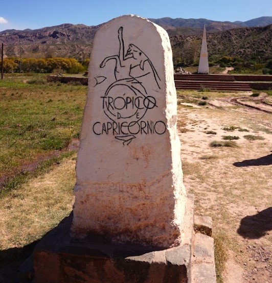 La vuelta de la excursión la dedicamos a visitar ciertos sitios de interés en la Quebrada. Para empezar, el Hito del Trópico de Capricornio, que marca el paralelo en donde Argentina se adentra en el trópico (dato curioso: de los más de 5100 Kms de longitud de Argentina, sólo 100 son tropicales). Y más adelante, en el pueblecito de Uquía, visitamos la diminuta iglesia de San Francisco de Paula que nos sorprendió con la mayor colección de pinturas de arcángeles arcabuceros del mundo, unas curiosas pinturas de la Escuela Cuzqueña de la época del Virreinato y que representan a los diez arcángeles vestidos de soldado y armados con unos tremendos arcabuces.