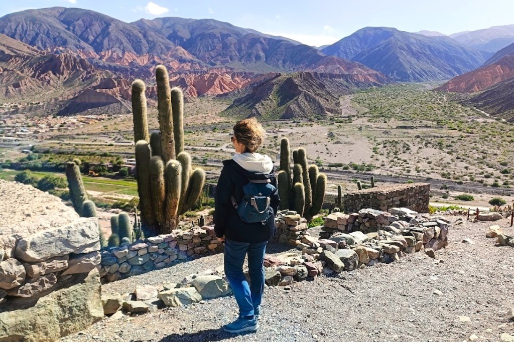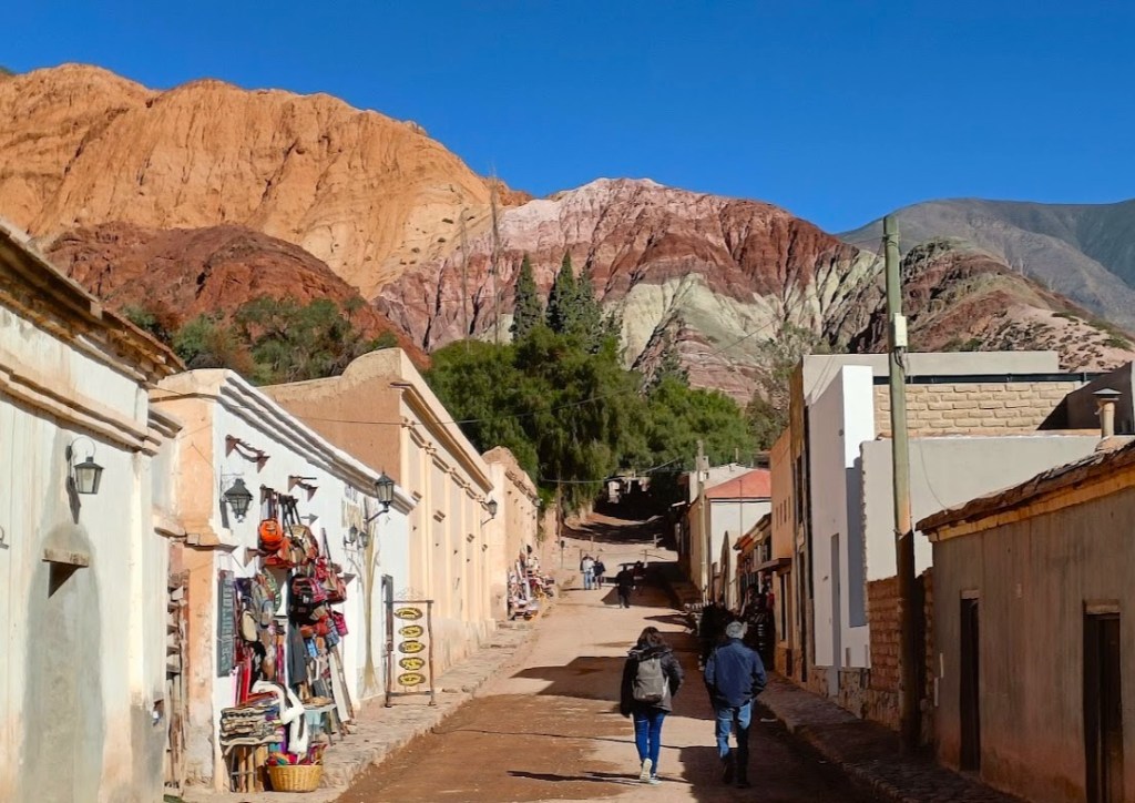 El mayor punto de interés del pueblecito es, sin duda, el majestuoso Cerro de Siete Colores que lo preside. Se trata de unas formaciones geológicas sinclinales que, a causa de sus cortes y sus fallas que dejan a la vista distintos minerales, muestran una variedad asombrosa de colores, del rojo al verde pasando por gris, ocre o amarillo. Su perspectiva al final de las callecitas del pueblo es una de las postales más conocidas del NOA. Y para disfrutarlo mejor, subimos al Observatorio del Porito a las afueras del pueblo e hicimos una pintoresca ruta nada exigente de una horita alrededor del Cerrito Colorado.