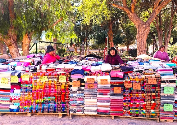 Dedicamos la tarde a conocer a fondo el pueblecito de Purmamarca. Todo lo a fondo que pudimos, ya que se trata de una pequeña población de cuatro calles (literalmente). Aun así, lo recorrimos muy a gusto ya que es un pueblo bonito y alegre de coloridas casas de una planta y que alberga un pintoresco mercadillo de artesanía en su centro en el que te venden todo tipo de ponchos, gorros y mantas típicos de la región, de más o menos calidad dependiendo de qué animal fuera la lana (los de llama eran baratitos mientras que los de vicuña estaban por las nubes)