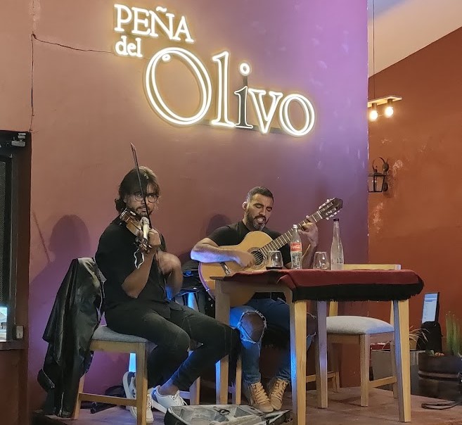 Por la noche nos decidimos por otra peña, la de El Olivo. Mucho más pequeñita que la del primer día, la encontramos bastante más auténtica ya que los músicos locales eran mucho más cercanos al público (acabamos charlando con uno de ellos que había vivido fugazmente en Barcelona) y cualquiera con nociones musicales podía subir al escenario, como así pasó en un improvisado y divertido dueto de guitarra y violín. Y la comida, oh sorpresa, resultó ser excelente.