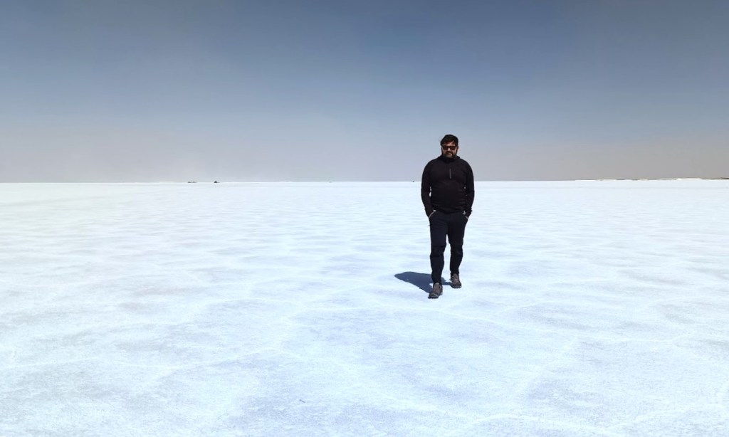 Tras un trayecto de suave descenso, entramos en el valle que nos llevó a la Salina Grande. Una visión espectacular y alucinante, incomparable con nada que hubiéramos visto antes, se abrió ante nosotros: kilómetros y kilómetros de desolación blanca, fue como llegar a otro planeta. En efecto, La Salina Grande es uno de los mayores saladares de Sudamérica, con más de 12.000 Ha de espejo blanco deslumbrante. Nos pertrechamos debidamente (gafas de sol y capucha contra el viento salado son imprescindibles) y durante una hora caminamos sin rumbo, saltamos las larguísimas zanjas de agua que se practican para recoger la sal y nos abonamos a la “turistada” obligatoria: las fotos sin perspectiva que por 1000 pesos te hacen los nativos y en las que apareces en ilusiones ópticas más o menos graciosas.