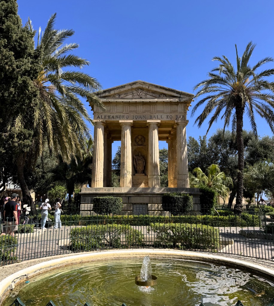 Esa mañana pudimos ver el Parlamento, el único edificio moderno de la ciudad pero que resulta estar perfectamente integrado en el entorno, nada de brutalismo, los albergues de las 8 diferentes lenguas de los Caballeros de San Juan (dato curioso: las 8 puntas de la Cruz de Malta representan estas 8 lenguas), la Concatedral (de momento por fuera), los parques de las antiguas barracas militares desde donde se defendía el Gran Puerto y que constituyen las únicas manchas verdes de la ciudad, las ruinas del Palacio de la Opera, bombardeado en la II Guerra y hoy habilitadas para conciertos al aire libre, y recorrimos callecitas y plazas, la mas imponente de ellas la Plaza Saint George donde una placa recuerda la doble fecha de independencia del país: cuando se la otorgaron los británicos, en el 1964 y cuando se marcharon definitivamente abandonando el control del puerto, en el año 1974 que es cuando la celebran realmente. Curioso.