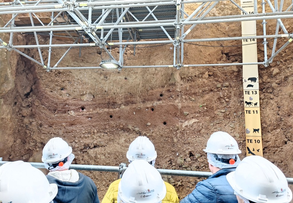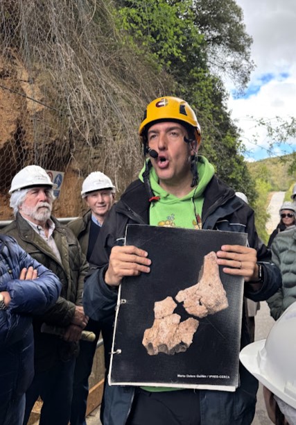 Y de todo eso, que como veis no es poco, lo aprendimos en la espectacular visita que hicimos al yacimiento. Guiados por el gran David Canales, arqueólogo y divulgador a tiempo parcial como él cuenta, y previo encaje del casco reglamentario, avanzamos por la trinchera para conocer varios de los sitios en los que actualmente se está excavando: la Sima de los huesos, la Sima de los Elefantes y la Gran Dolina. Con este escenario de fondo, nos explicó las diversas técnicas de excavación que usan, desde el martillo neumático al pincel del uno. Y algo que nos resultó muy interesante, los métodos de datación que se emplean. Entre otros, por los animales encontrados junto a los huesos, por las herramientas o, algo de lo que no teníamos ni idea, por la orientación de las rocas magnéticas que siguen las variaciones del eje terrestre. Arqueomagnetismo, se llama la técnica. Ah, y nos presentó al famoso Miguelón (Induráin estaba triunfando cuando lo encontraron), bueno la réplica de su cráneo, que fue el hallazgo que encajó al Homo Antecessor en el hueco que faltaba en la escala evolutiva.