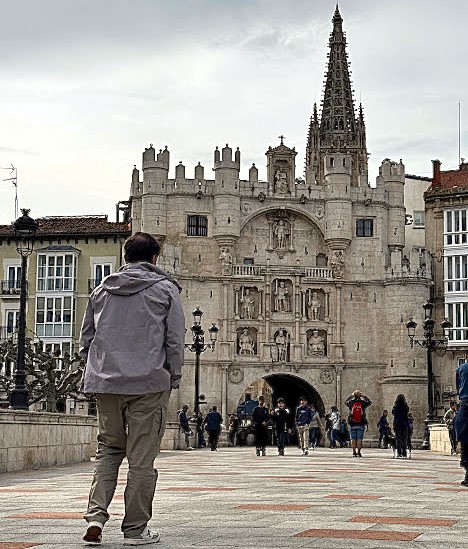 Los alrededores de la catedral constituyen el centro histórico de Burgos, un área que está perfectamente conservada. La puerta de entrada a la Plaza de la Catedral, por ejemplo, el Arco de Santa María donde desemboca el señorial Espolón, nos pareció magnífico, con sus solemnes estatuas de próceres de la ciudad (santos, reyes y guerreros mezclados). Y es muy bonito pasear por las callejuelas que rodean la Catedral, que muchas veces están en pendiente o en desnivel debido al peculiar emplazamiento del edificio en la falda de una colina. La Catedral es visible desde todos los puntos del centro histórico, en especial sus característicos y celebérrimos campanarios, y cada perspectiva desde plazas o callejones es a cuál más fotogénica. Nos encantó el conjunto desde la Plaza Mayor por ejemplo, con sus soportales de piedra o la desde el Huerto del Rey, con la sorprendente vista del ábside.